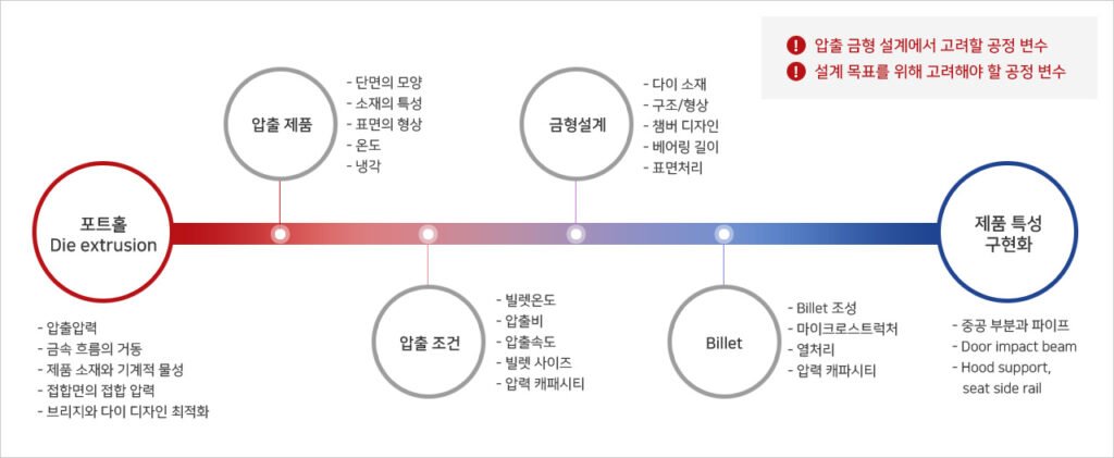 알루미늄소재, 공정조건, 그리고 압출금형입니다.”